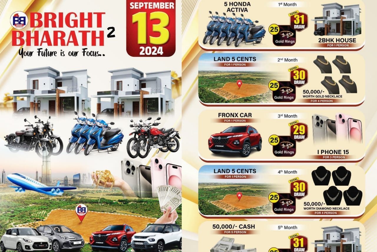 ತಿಂಗಳಿಗೆ ಕಟ್ಟುವ 1000 ರೂಪಾಯಿಗಳಿಂದ 6 ಮನೆಗಳು, 4 ಐಶಾರಾಮಿ ಕಾರು, 4 ಸುಸಜ್ಜಿತ Land ಸೇರಿದಂತೆ, ಚಿನ್ನ, ಡೈಮಂಡ್, ಬೈಕ್,ಆಕ್ಟಿವಾ, ನಗದನ್ನು ನಿಮ್ಮದಾಗಿಸಿಕೊಳ್ಳಬಹುದು.