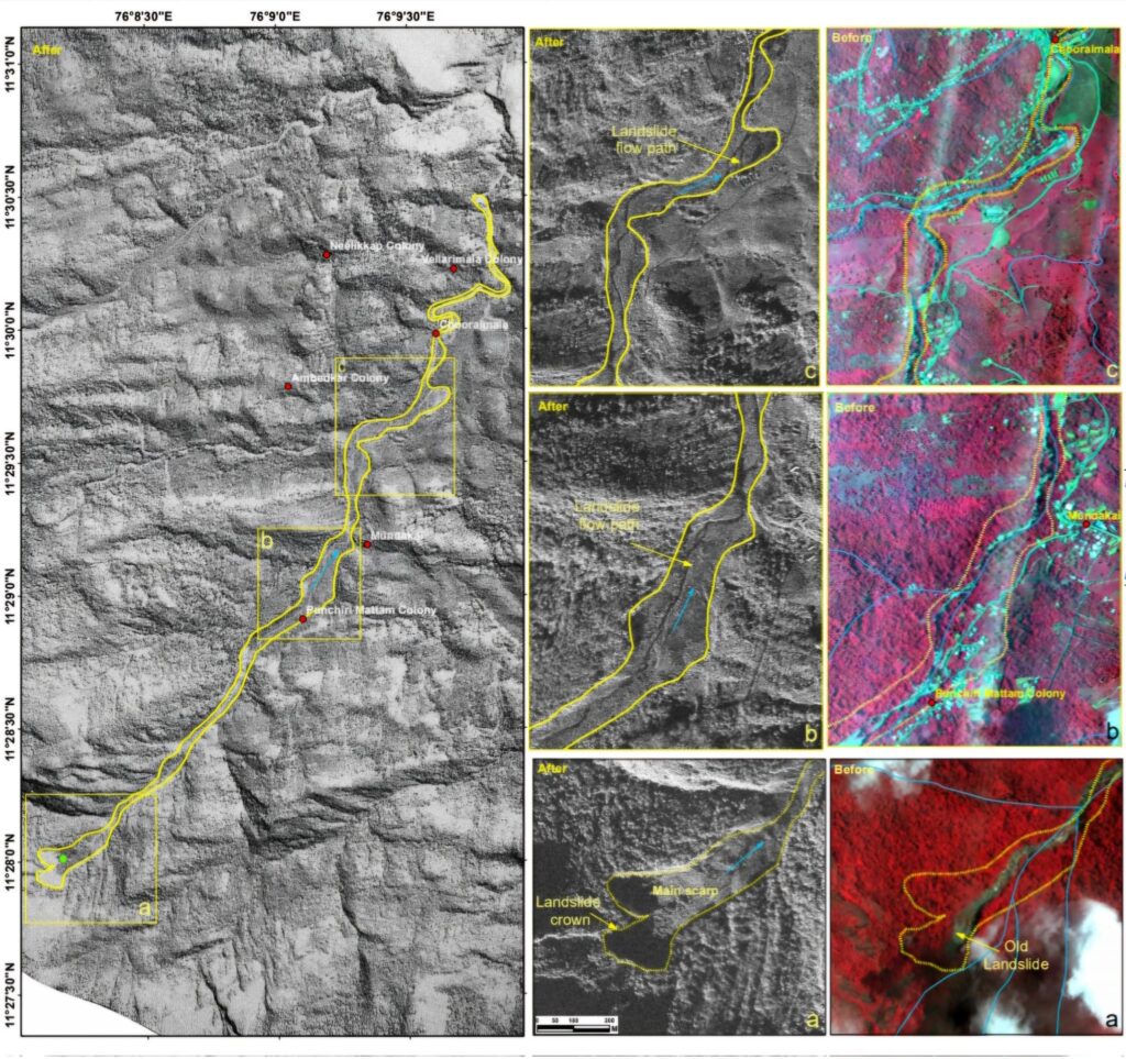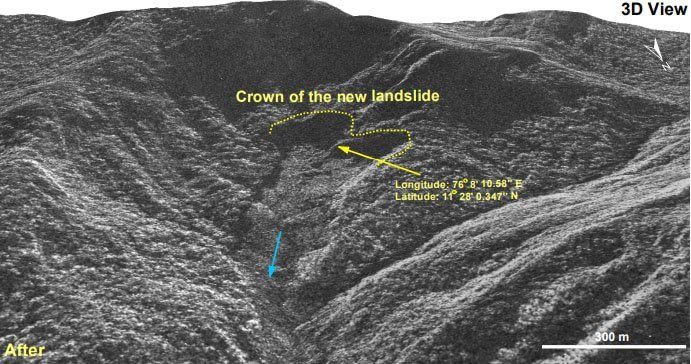 ಇಸ್ರೋ ಗುರುವಾರ 2 ಉಪಗ್ರಹ ಚಿತ್ರ ಪ್ರಕಟಿಸಿದೆ. ಮೊದಲನೆಯ ಚಿತ್ರದಲ್ಲಿ ಈ ಹಿಂದೊಮ್ಮೆ ಸಂಭವಿಸಿದ ಭೂಕುಸಿತದ ದೃಶ್ಯವಿದೆ. ಈ ಬಾರಿ ಉಂಟಾದ ಭೂಕುಸಿತದ ಸ್ಥಳದಲ್ಲೇ ಹಿಂದೆಯೂ ಈಗಿನಷ್ಟು ಅಲ್ಲದಿದ್ದರೂ ತಕ್ಕಮಟ್ಟಿಗೆ ಭೂಕುಸಿತ ಆಗಿತ್ತು.